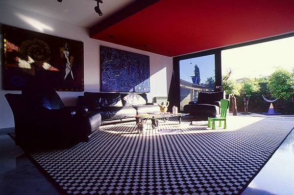 Современный стиль с большими окнами и открытым пространством.