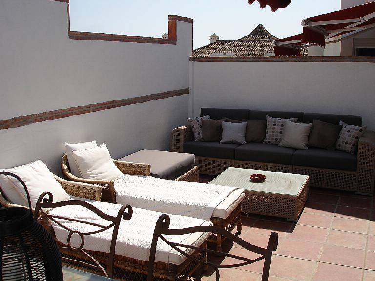 Уютный пентхаус: 3 спальни, 2 ванные комнаты, гостиная, столовая, оборудованная кухня и терраса. Меблирован. Система кондиционирования. Гараж и кладовая. 24-часовая охрана.