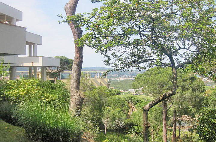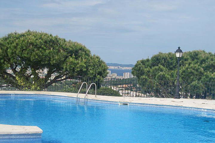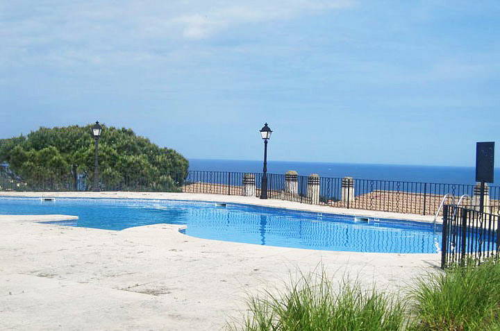 Превосходный одноуровневый апартамент в Сан Фелиу де Гишольс с панорамными видами на море расположен в урбанизации с бассейном и садом.