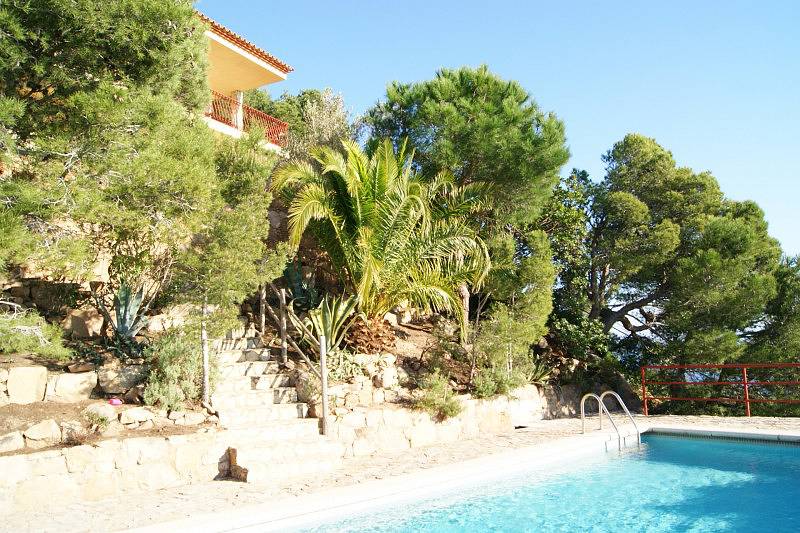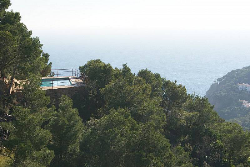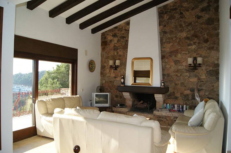 на верхнем этаже расположены две спальни (одна с гардеробной) и ванная комната. Этажом ниже расположена гостиная с камином, столовая, полностью укомплектованная кухня. На этом же этаже есть выход на террасу с панорамными видами на море и бухту Aigua Gelida. На самом нижнем этаже расположены две большие спальни, ванная комната. Есть выход в сад.