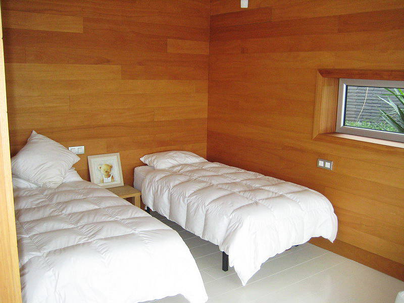 На верхнем уровне – большая спальня с наклонным потолком с видом на окрестности. На нижнем уровне – ванная и прихожая . На другом конце – двойная спальня с красивым видом. В гостевых апартаментах – комната и ванная. Мебель из натурального дерева.