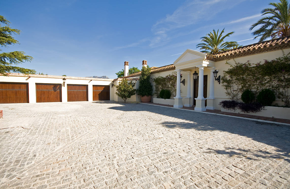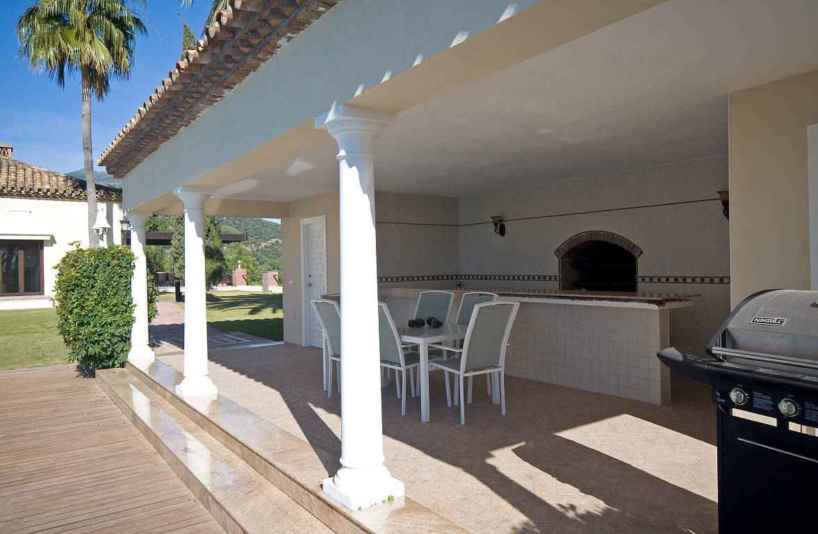 Исключительная вилла, ориентированная на южную сторону построена по самым высоким стандартам в безопасном и закрытом сообществе в одном из лучших мест в Madroñal недалеко от Марбельи.