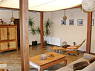 Через большие стеклянные двери можно добраться до уютной веранды с большим количеством сидячих мест для любого времени.