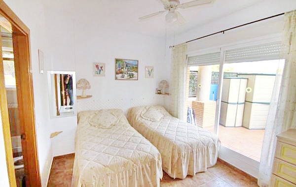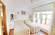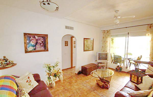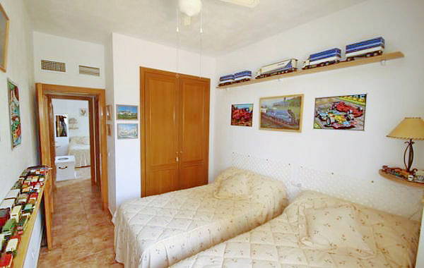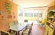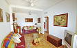 Есть 2 спальни и 2 ванные комнаты (1 ванная). Из гостиной выход в отдельную столовую, а затем к саду.