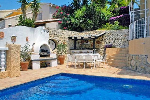 Дом занимает высокий участок с впечатляющим видом на Кальпе, Penon де Ифач и море.