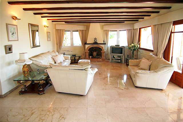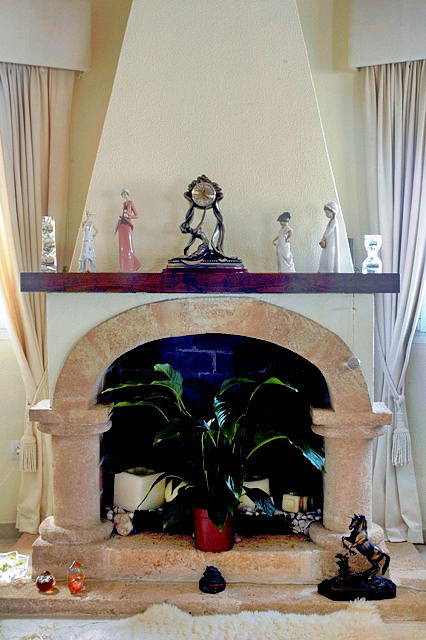Коридор ведет в большую гостиную с камином. Есть спутниковое телевидение и телефон.