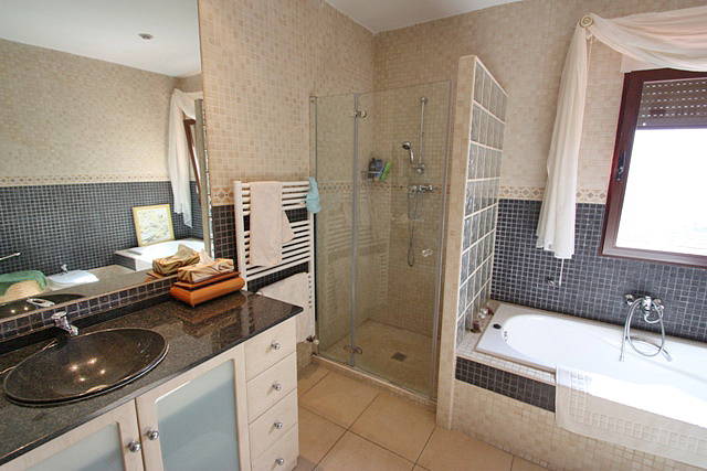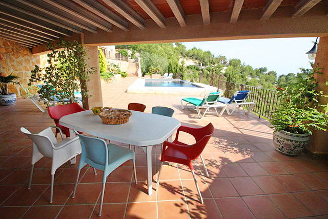 Элегантная вилла в эксклюзивном жилом районе на большом участке и с панорамным видом на море и долину. Отдельной, огромной гостиной и столовой. Центральное отопление.Собственность очень интимная и с комнатами для гостей. Большая кухня, накрытый гараж.