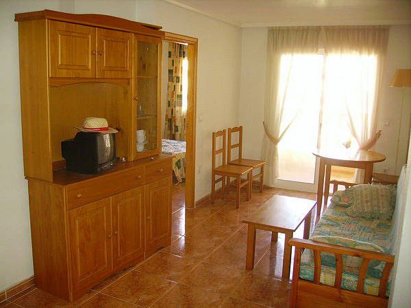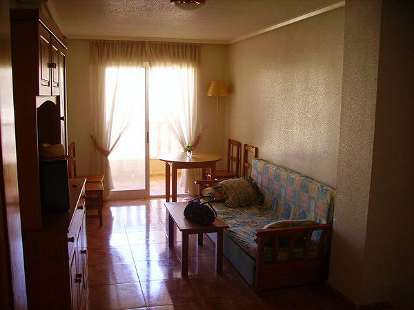 Квартира с 2-мя спальнями √ 60 кв.м. строительной площади, 4-й этаж , меблирована, укомплектована бытовыми приборами, кухня американского типа, окна выходят на урбанизацию с общим бассейном, терраса.