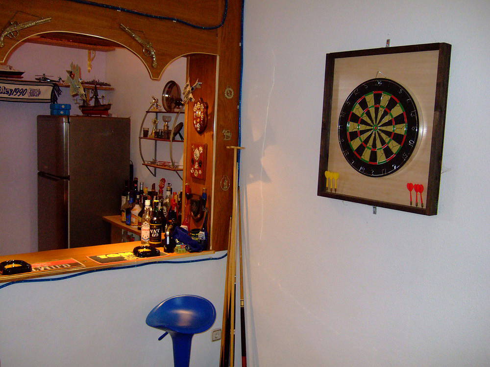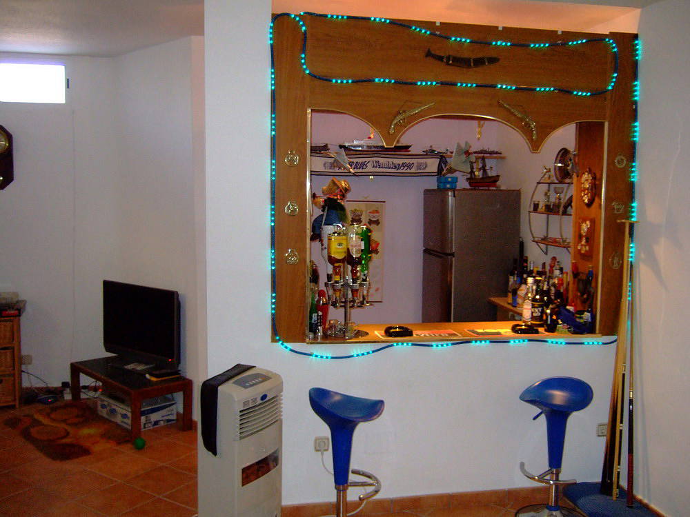 Через гостиную на первом этаже можно спуститься на нижний этаж ,где находятся душевая комната, бильярд, офисное помещение и полностью оборудованный бар.