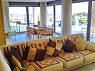 Через большие окна витринного формата просторного салона, расположенного на 1-ом этаже открывается вид на море, озеленённый участок и бассейн.