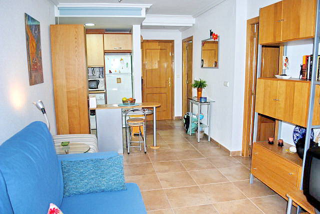 В квартире гостиная / столовая, американская кухня, 1 спальня, 1 ванная комната, бассейн, гараж, прямой доступ к пляжам и Aguamarina La Glea.