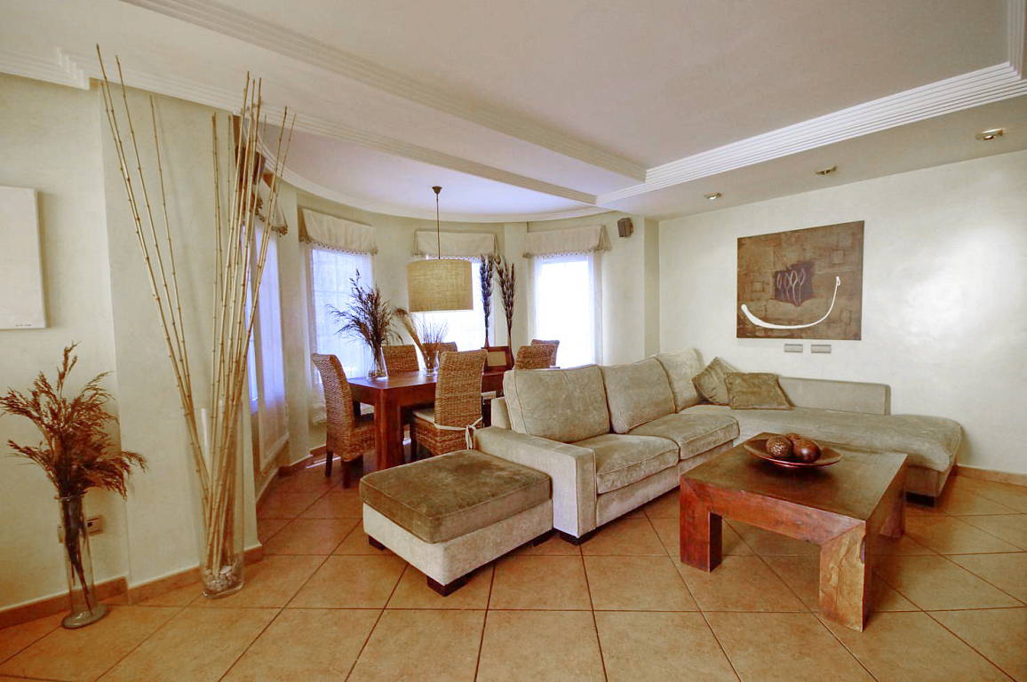 Яркая гостиная и колониальная мебель, 3 больших спальни со шкафами, две из них с собственной террасой, а в основной спальне также имеется гардеробная и ванная комната.