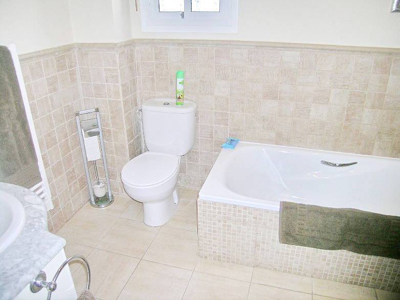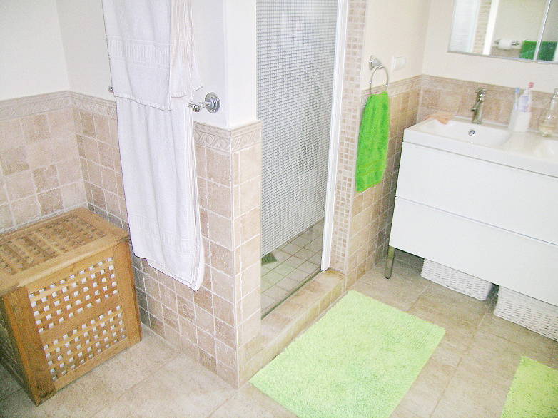На первом этаже есть большая спальня с двуспальной кроватью, ванная комната и большая кухня и подсобное помещение.