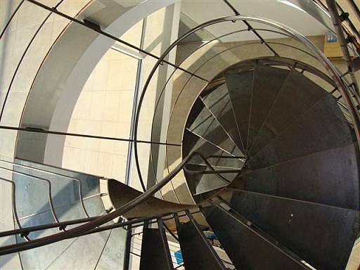 В центре дома расположены металлическая винтовая лестница и лифт.