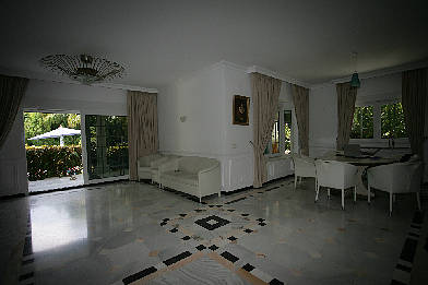 В доме большой зал с камином, подогрев мраморных полов, центральное кондиционирование, сауна с джакузи на 8 персон, бильярдная .