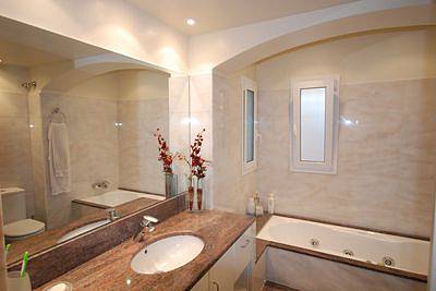 Имеется бассейн 12х6м, бассейн с гидромассажем на 6 чел. От зоны бассейна открывается вид на море. Сад снабжён охранной системой и камерами видео наблюдения. Для системы автополива используется собственная скважина с ёмкостью на 40 м3 воды.