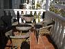 Терраса на выходе в бассейн со столиком и стульями.