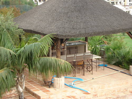 Вилла окружена тропическим садом с большим бассейном и барбекю зоной, которая выполнена в виде бунгало , что придает особый колорит саду.
