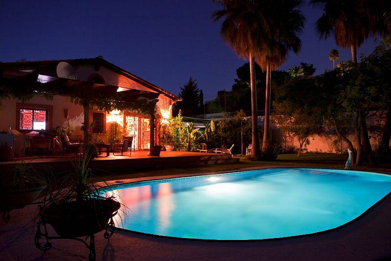 Территория: Автоматические ворота; Барбекю зона; Бассейн; Парковка; Подсветка бассейна; Сигнализация; Ухоженный тропический сад