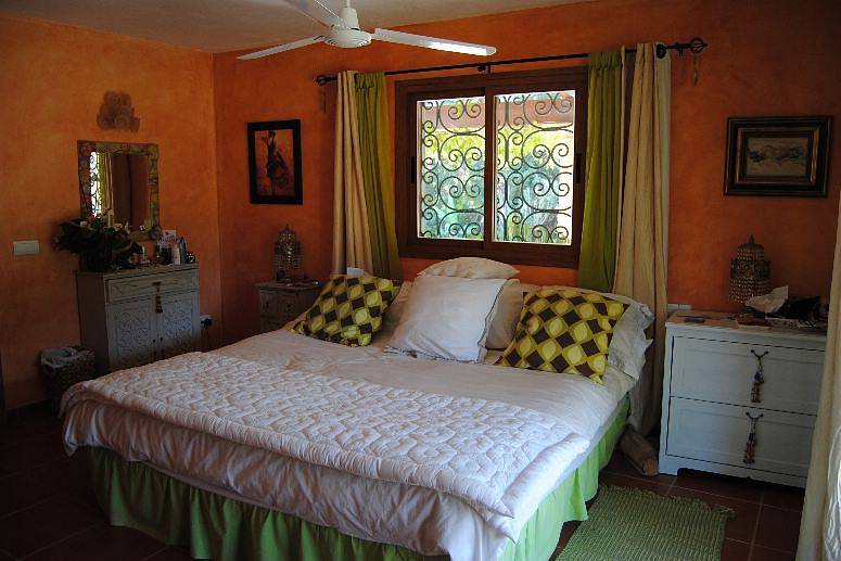 Большие окна с доступом в гостиную. Tерраса главной спальни окруженa зеленью бугенвилии и жасмина, что позволяет Вам наслаждаться прекрасным видом на горы и невероятным закатом.