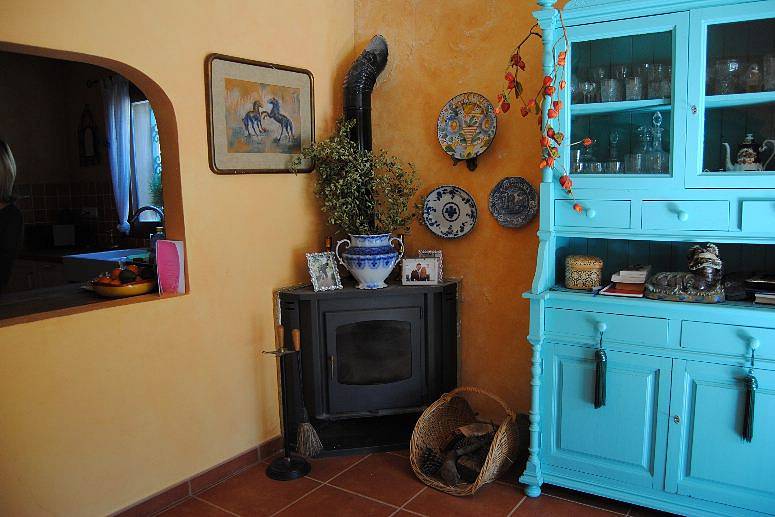 Гостиная светлая, просторная с камином (на дровах). Большие арки, отдельная кухня с прилегающим подсобным помещением в котором находится стиральная машина и шкафы.