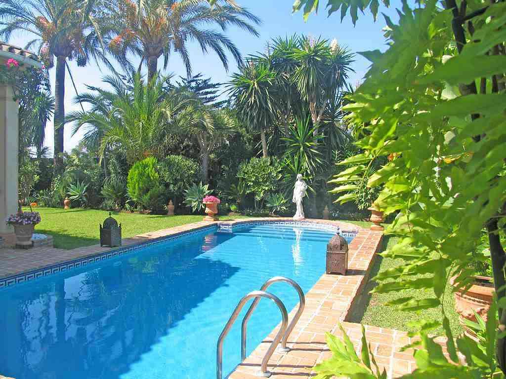 Юго/ западные, солнечные террасы с чудесным, зрелым садом, с тропическими растениями и большим бассейном с подогревом.