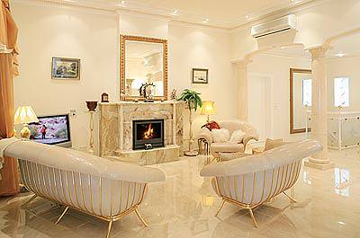 Просторные, с открытой планировкой комнаты, отлично оформлены, украшены красивые мраморными колоннами и изысканными, блестящими, сияющими полами.