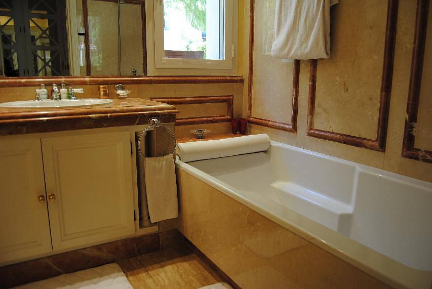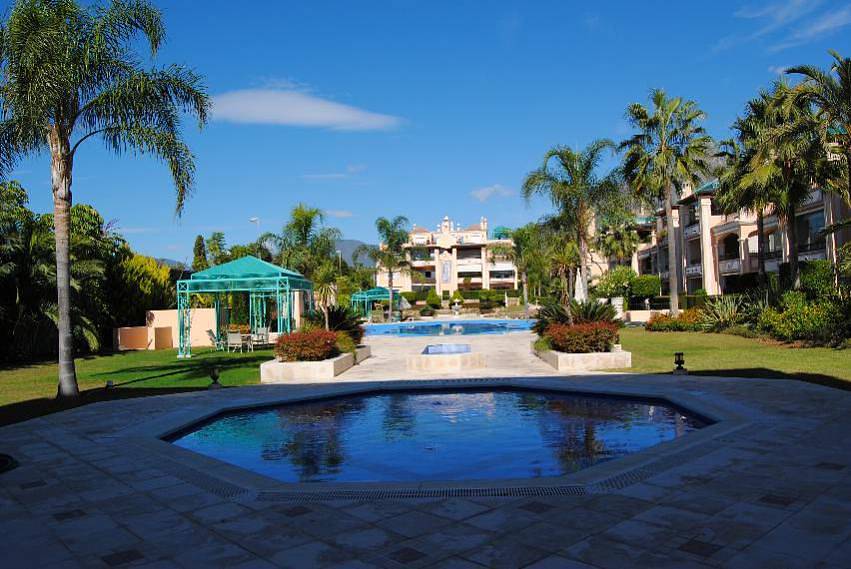 Элегантные и просторные апартаменты на первом этаже, с видом на море в полностью закрытой урбанизации, с 24 час. охраной и красивыми коммунальными садами, в одном из лучших районов Золотой Мили, в нескольких минутах от Пуэрто Банус.