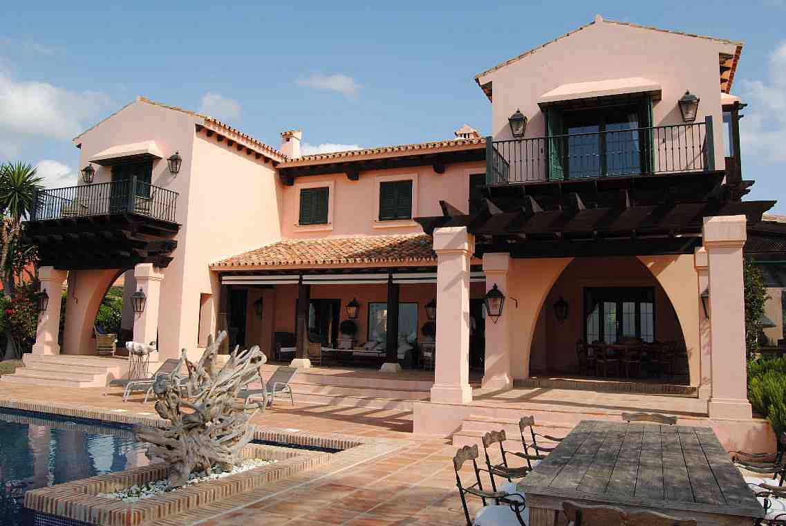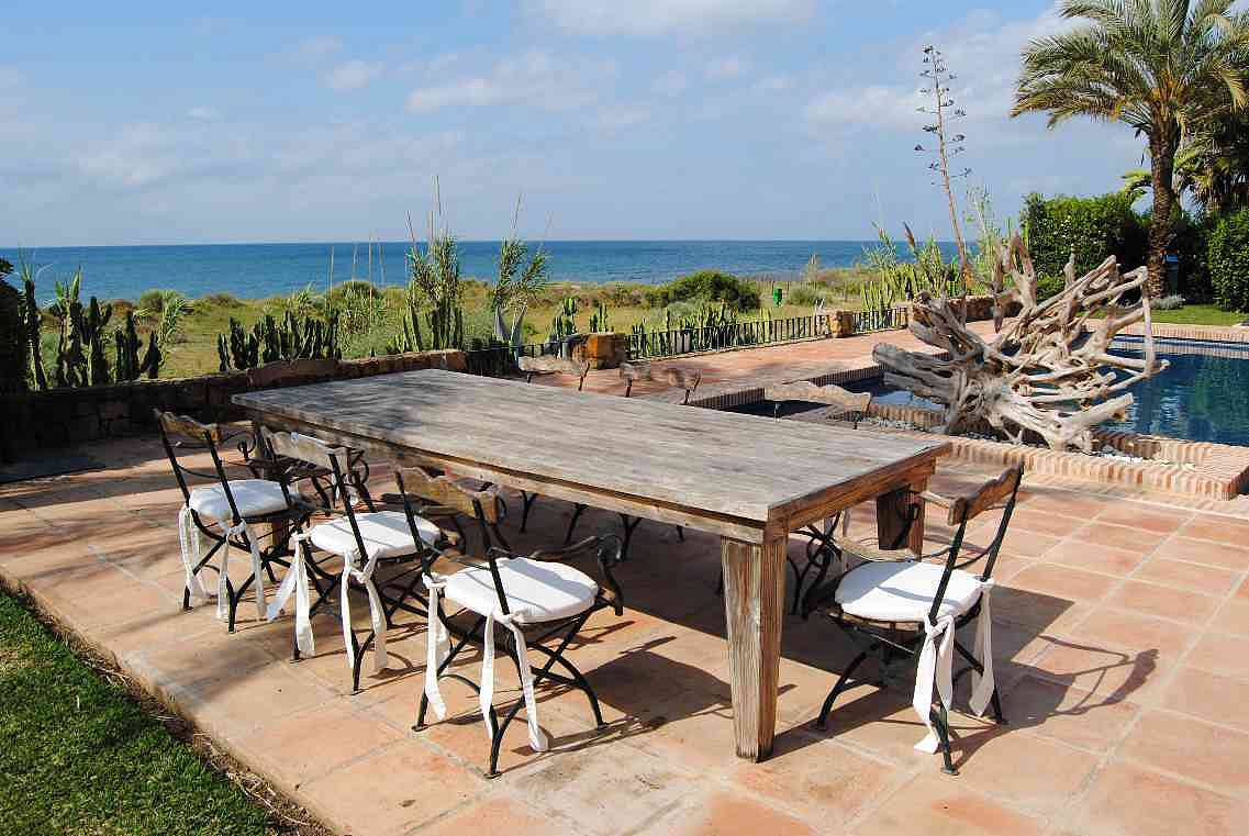 Роскошная вилла в Андалузском Рустик стиле с панорамным видом на море и песчаные дюны. 4 спальни, 3 ванные комнаты, 1 гостевой туалет, апартаменты для гостей, комнаты для персонала, сауна, тренажерный зал, гараж + парковочное место под навесом, полы с подогревом.