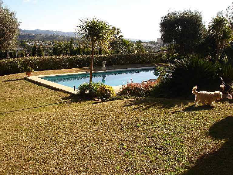 Красивый сад с бассейном с подогревом, крытая терраса с местом для обедов. Во всем доме полы с подогревом и кондиционер в спальне.