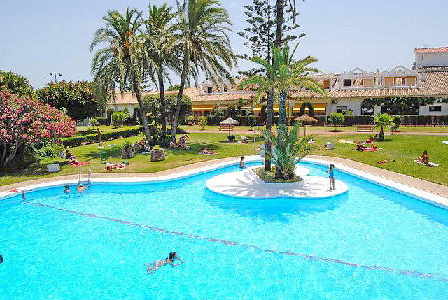 Комплекс в зоне Las Chapas с многочисленными бассейнами, джакузи на территории и ухоженным тропическим садом.