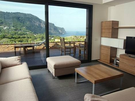 Просторный дом с бассейн и гидромассажем на 6 чел. От зоны бассейна открывается вид на море.