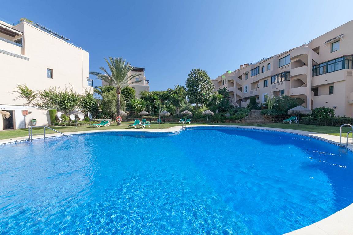 Пышные коммунальные сады с бассейном. А также небольшой крытый бассейн, тренажерный зал и СПА, 24 час. охрана и услуги консьержа. Рядом с центром Эстепона и различными сферами услуг.