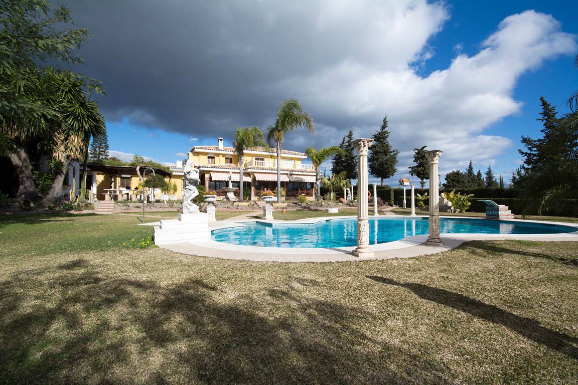 Сельская вилла на частном большом участке в La-Carolina, в Золотой Миле, Марбелья с садом, бассейном, джакузи, водопадом и зоной барбекю.