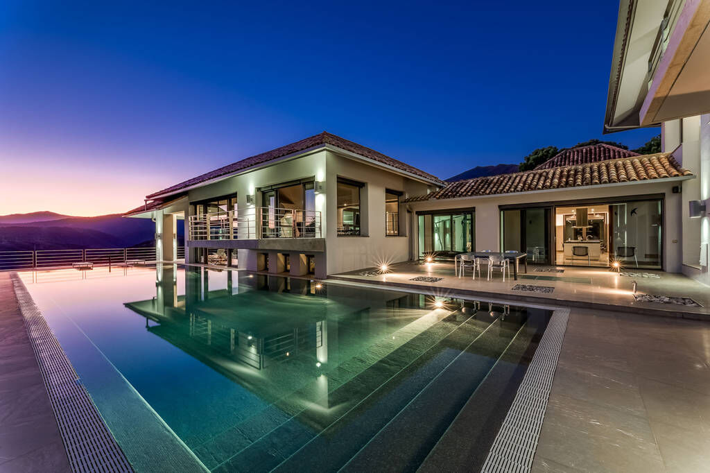 Необычный жилой дом расположенный в самом престижном районе Сьерра-Бланка. Расположен на огромном участке 5941 м² с захватывающим панорамным видом на море.