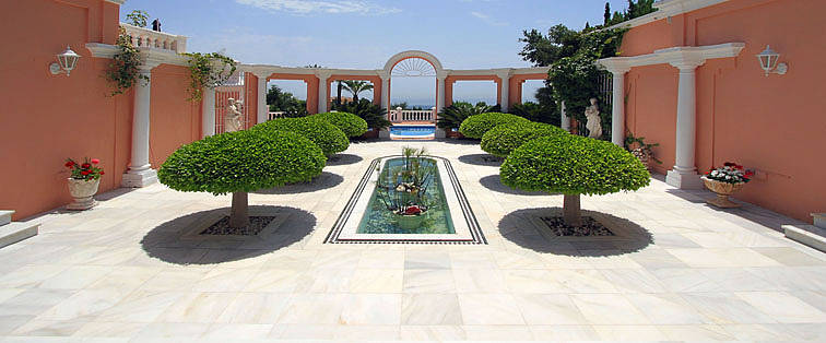 Дом разделен на два отдельных здания, которые соединены галереей с Мавританскими мраморными арками со специально заказанными дверями с ковкой и патио, 13x8 метров с фонтаном, который является точной копией фонтана в Альгамбра в Гранаде.