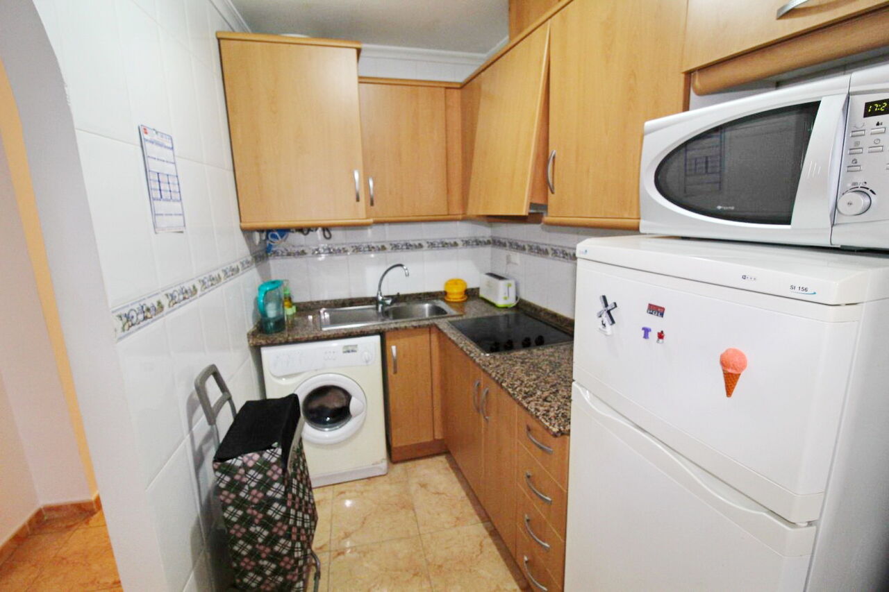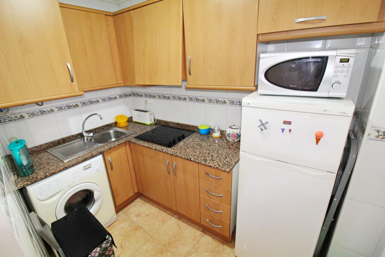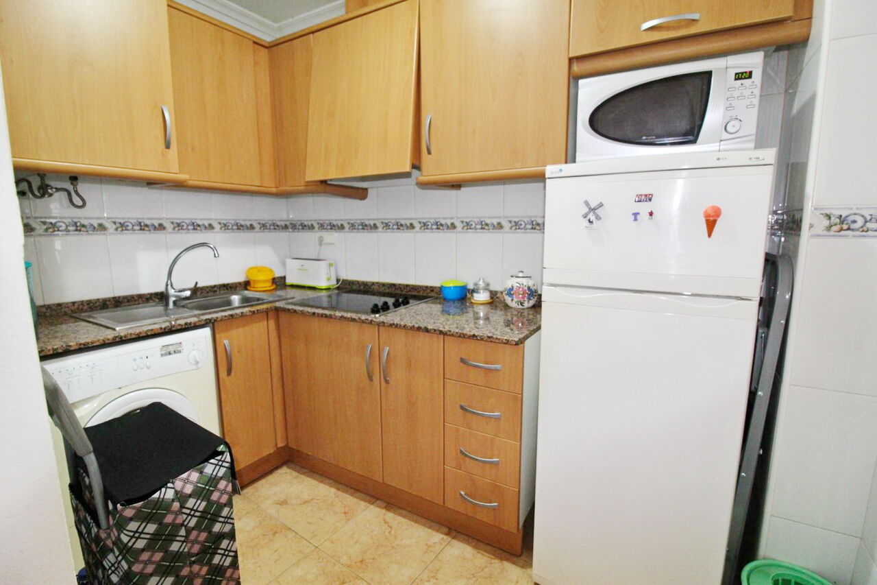 Квартира в районе Торревьеха, Парк Лас Насионес, спальня с двуспальной кроватью, ванная комната, оборудованная кухня, внутренняя отделка из дерева.