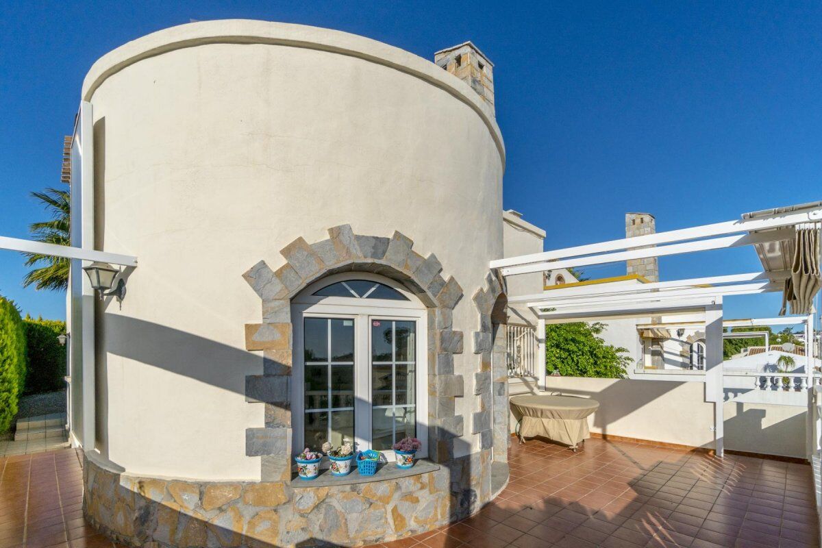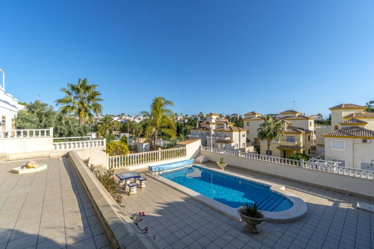 Безупречная отдельная вилла с 3 спальнями, 2 ванными комнатами (одна из них с ванной), оборудованная кухня, подсобное помещение, гостиная / столовая комната, большая терраса 30 м2 и терраса на крыше 31 кв.м, в дополнение к участку 400 кв.м.