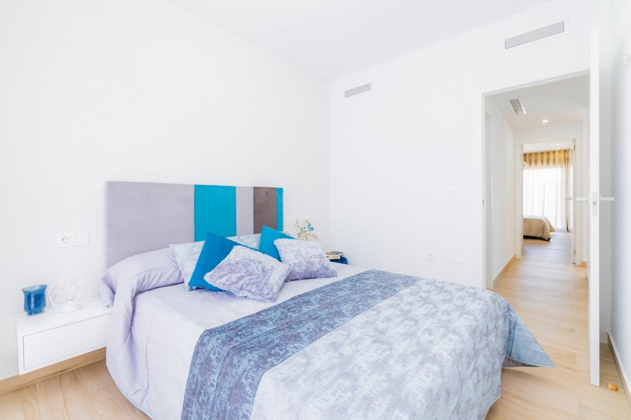 Семь комфортабельных одноуровневых вилл с солярием: 3 спальни, 2 ванные комнаты, гостиная, кухня, терраса, патио и частный бассейн.