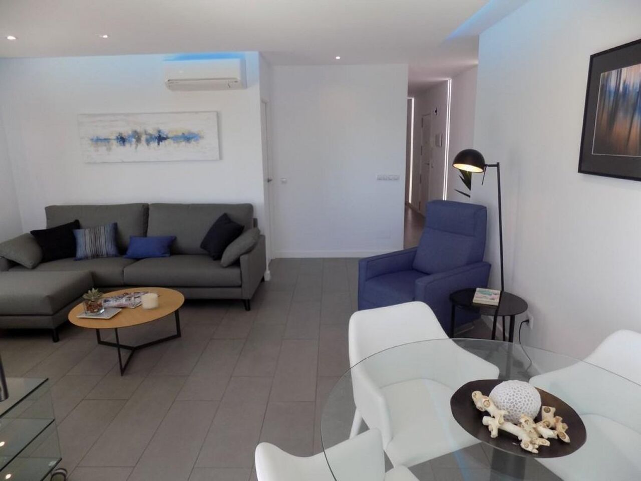 Удивительный панорамный вид на Средиземное море. 3 просторные спальни, главная спальня с гардеробной и ванной комнатой, 1 семейная душевая комната, отдельная полностью оборудованная кухня, гостиная и столовая с выходом на террасу 12 м2.