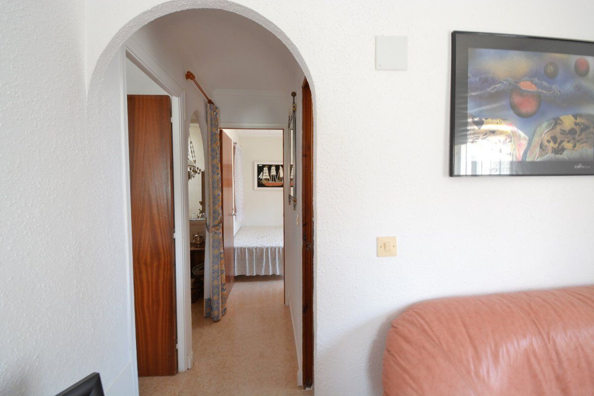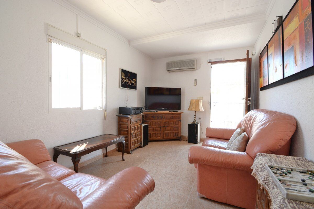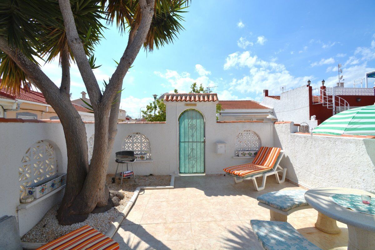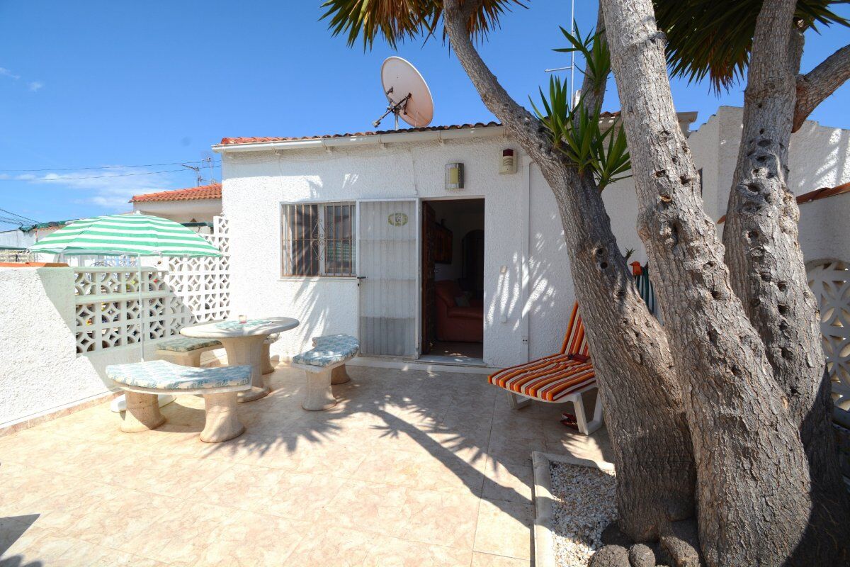 Красивое бунгало расположено в урбанизации Торрета III. При входе в него есть сад с круглым столом и каменными скамейками, барбекю.