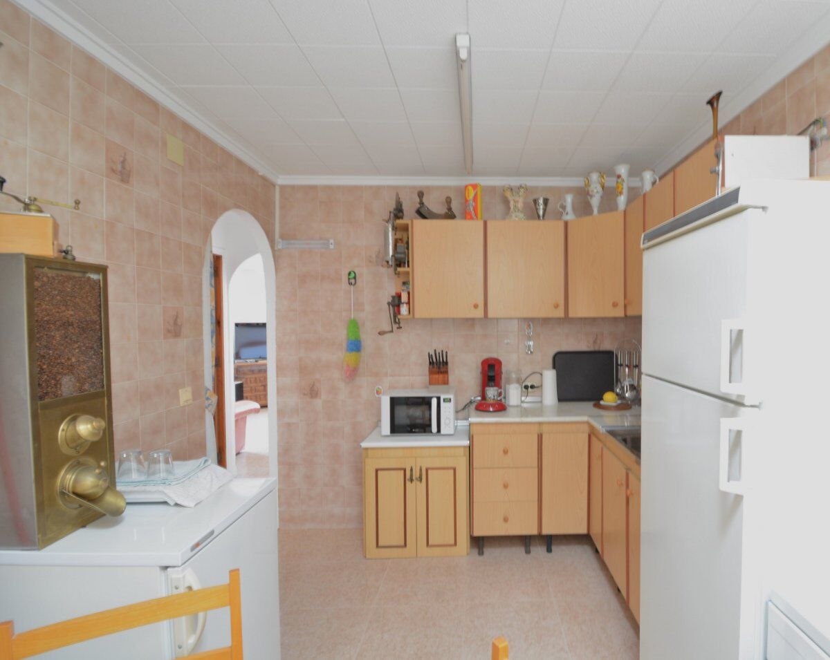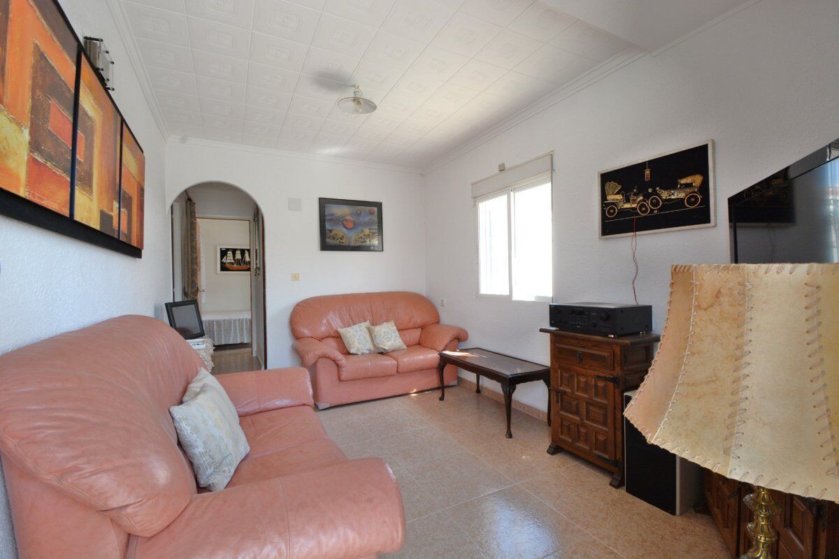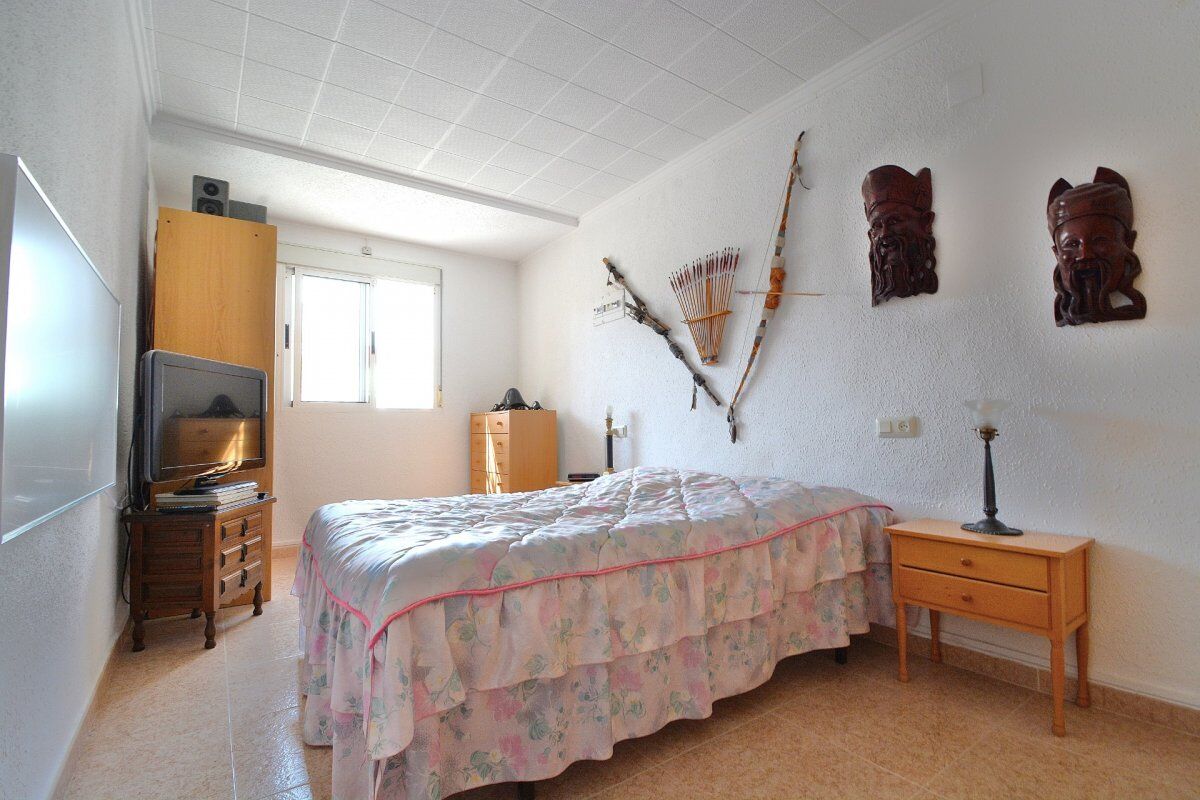 Красивое бунгало расположено в урбанизации Торрета III. При входе в него есть сад с круглым столом и каменными скамейками, барбекю.