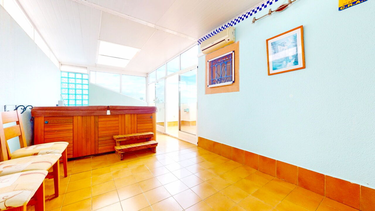 Вот все, что вам нужно знать о жилье…. . - Большая столовая. - Полностью оборудованная отдельная кухня. - Отдельное белье. – 3 двухместных номера. - Встроенные шкафы. – 2 полноценных санузла. – построено 83 метра. — 157 метров участка. – Большая терраса. — Застекленная площадка с уже смонтированной джакузи. - Общий бассейн. - Солнечные панели уже установлены. – Кондиционеры "СПЛИТ" [amp;] РАДИАТОРЫ. – МБИ 258 евро. – Сообщество 612/год. . А также этот дом особенный, потому что он расположен в одном из самых безопасных районов, хорошо связан со школами, супермаркетами, больницей Торревьехи, парками и автобусными остановками, которые доставляют вас повсюду каждые 5-10 минут. Свяжитесь с нами! Мы будем рядом с вами на протяжении всего процесса покупки дома вашей мечты…