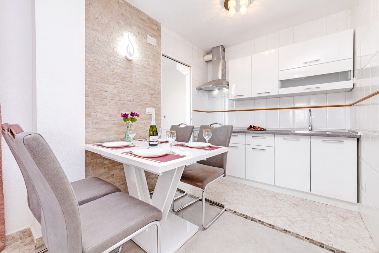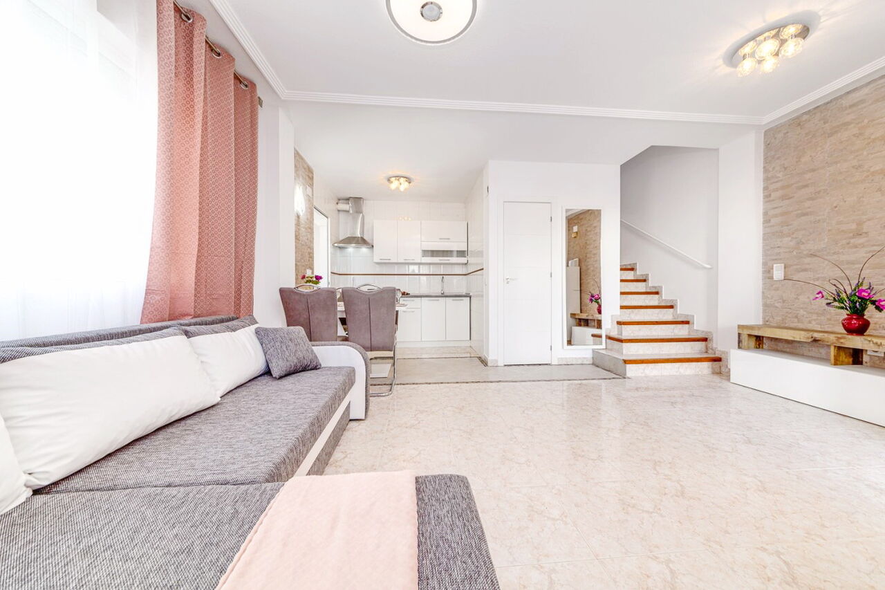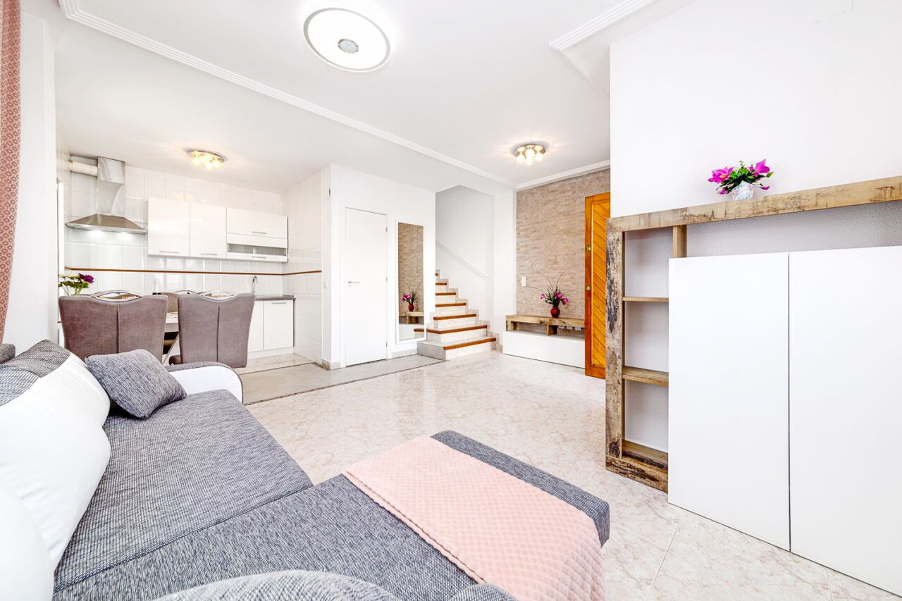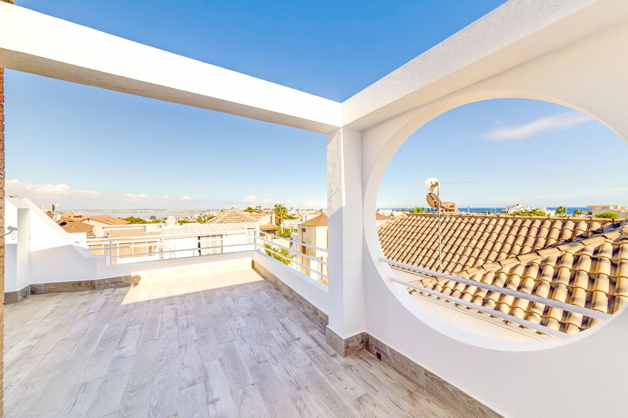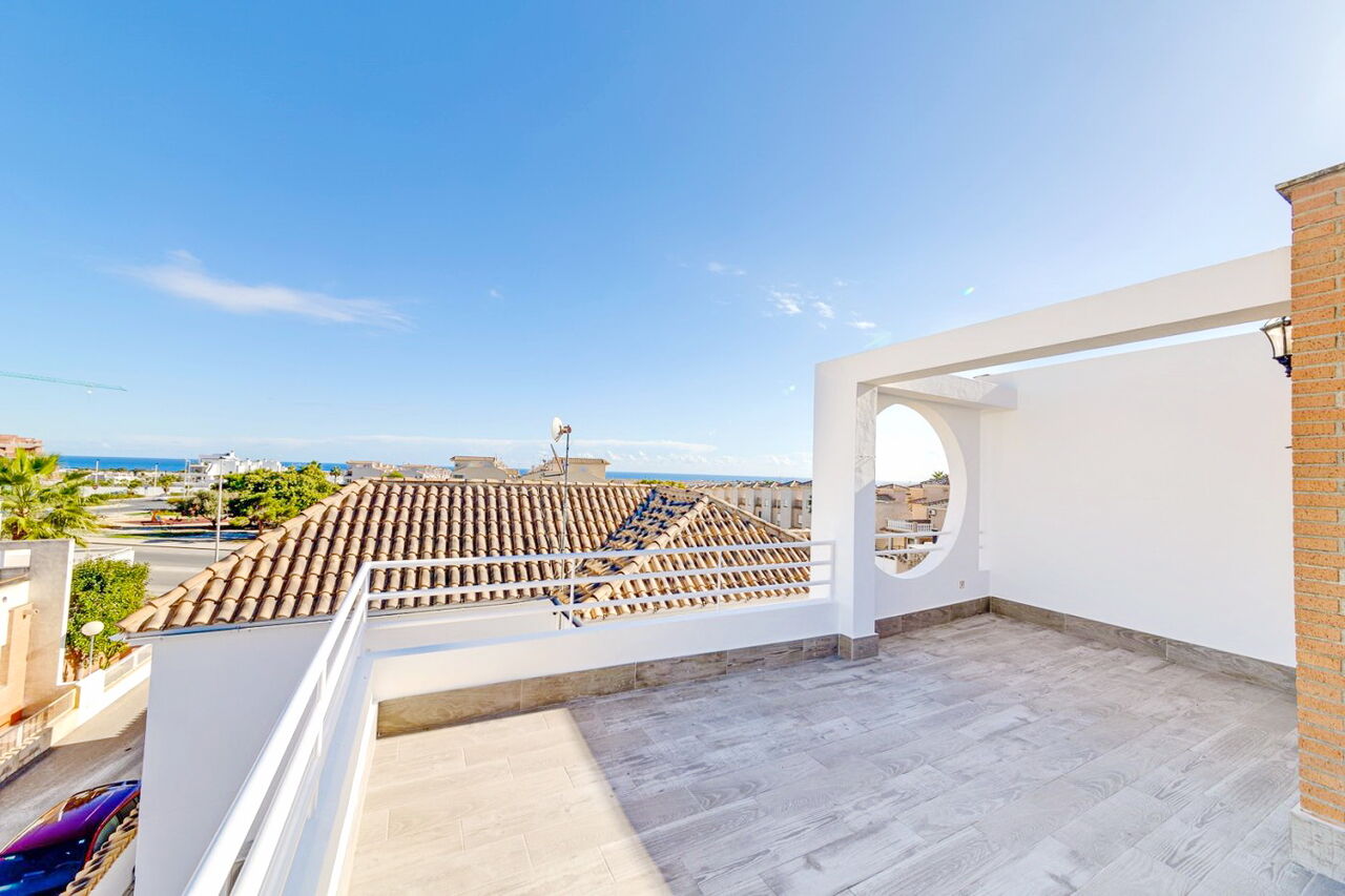 Красивая вилла в Лос Альтос всего в 15 минутах ходьбы от пляжа Пунта Прима!. Хорошая урбанизация с зеленой зоной и общественным бассейном рядом с супермаркетом Consum.. В шале есть:. - 2 спальни - обе со встроенными шкафами. - большая гостиная. - 2 ванные комнаты. - Солярий с видом на море. - сад с подъездной дорожкой. Дом полностью отремонтирован и обставлен новой мебелью. Очень хорошая инвестиция, чтобы жить круглый год, а также для туристов. Не упустите возможность!