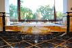 зонами отдыха с античным камином и столовая, крытое крыльцо и открытая терраса ведущие в красивый сад с большими пальмами и к