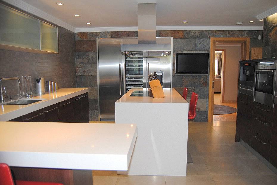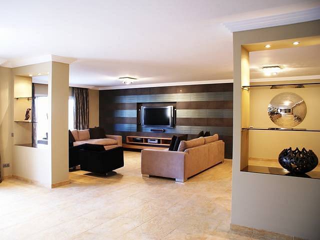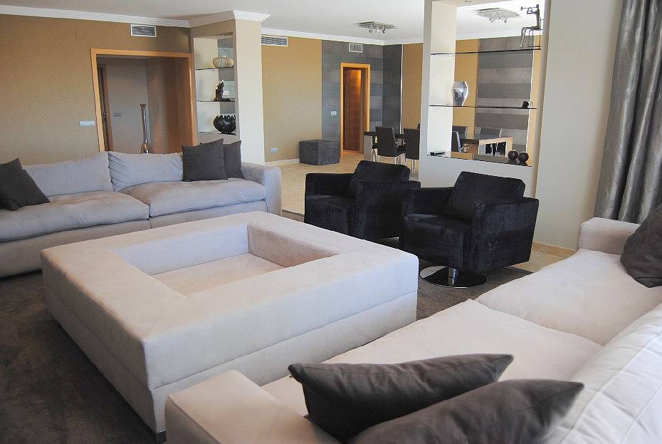 В апартаментах: великолепная гостиная/ столовая комната с широкими террасами откуда открывается красивый вид на горы и море, три просторные спальни с ванными комнатами, четвертая спальня с ванной комнатой (расположенная рядом с кухней) которая может быть