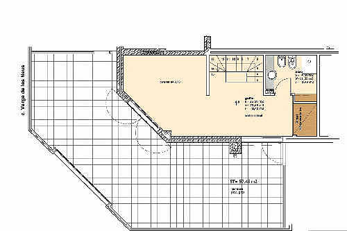 Кабинет площадью 29 м2, ванная комната и терраса площадью 57 м2 на верхнем этаже.