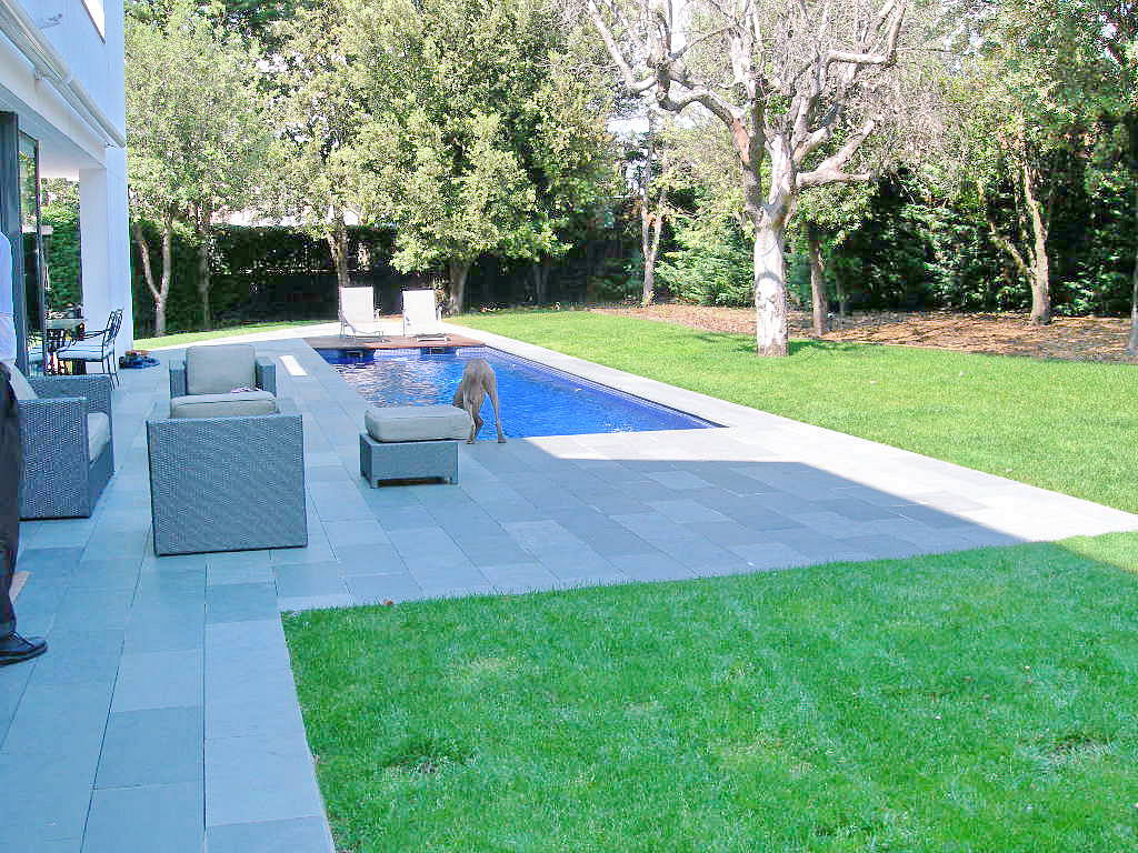 Красивый сад террасой и впечатляющий бассейн. Очень красивый вид.