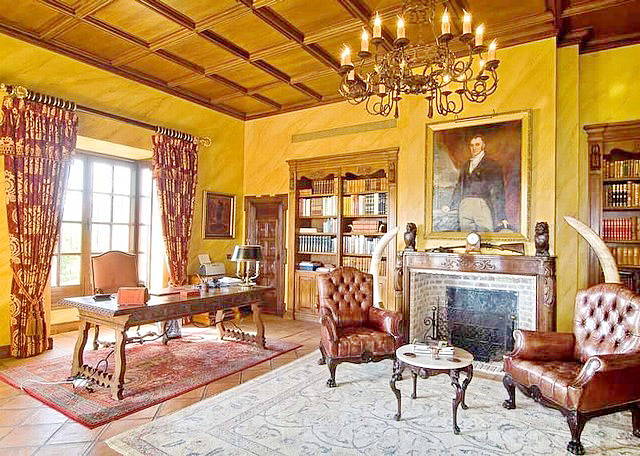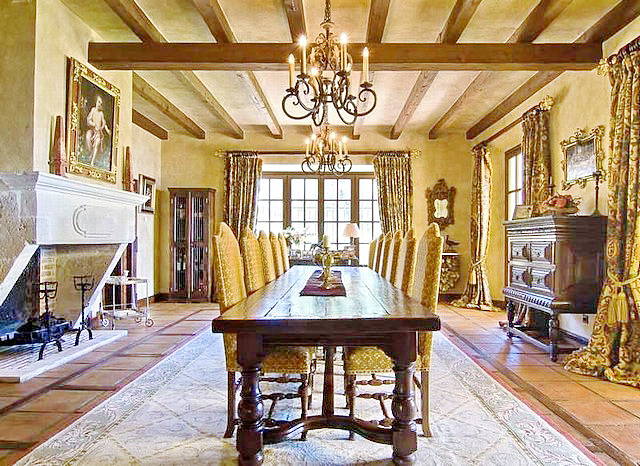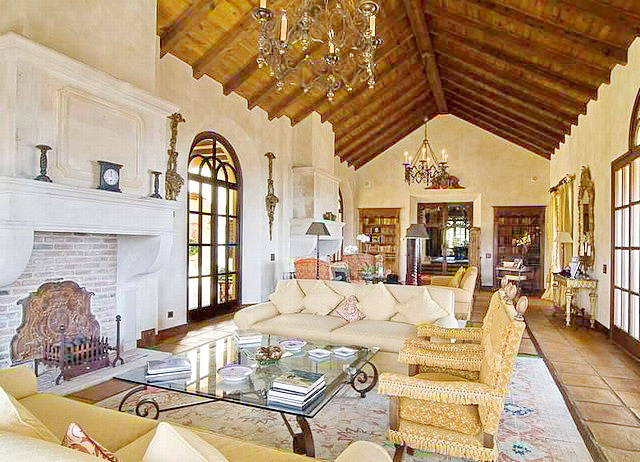 Резиденция построена на 2 этажа плюс нижний уровень: первый этаж: холл с двойной высоты потолками и камином, прихожая, ведущая к гостиной с 2 креслами, на потолке дубовые балки, гостиная имеет выход на террасу и центральный внутренний дворик с фонтаном, ТВ-зал с камином и выходом на террасу, столовая с зоной на 12 человек; офис / библиотека с дубовыми балками на потолке, гостевая ванная, спальня с доступом к центральному внутреннему дворику с садом; современная профессиональная кухня- столовая с выходом на террасу с зоной барбекю, прачечная, кладовая, туалет для гостей.