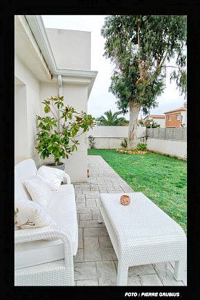 двухэтажная, площадью 300кв. м., меблирована, с тремя спальнями, есть кондиционер, частный сад, собственная парковка.